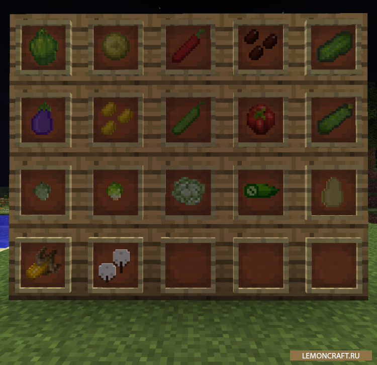 Мод HarvestCraft добавит в игру огромное количество разнообразной пищи, которая будет выглядеть очень реалистично. Так как в стандартной версии игры еды не так уж и много, авторы мода решили исправить данный недочет. Большое количество овощей и фруктов придадут игре больше реалистичности. Все фрукты и овощи нужно будет вырастить, это еще один плюс мода для тех кто любит заниматься фермерством. Весь процесс получения новой еды займет некоторое время, но поверьте, это того стоит.